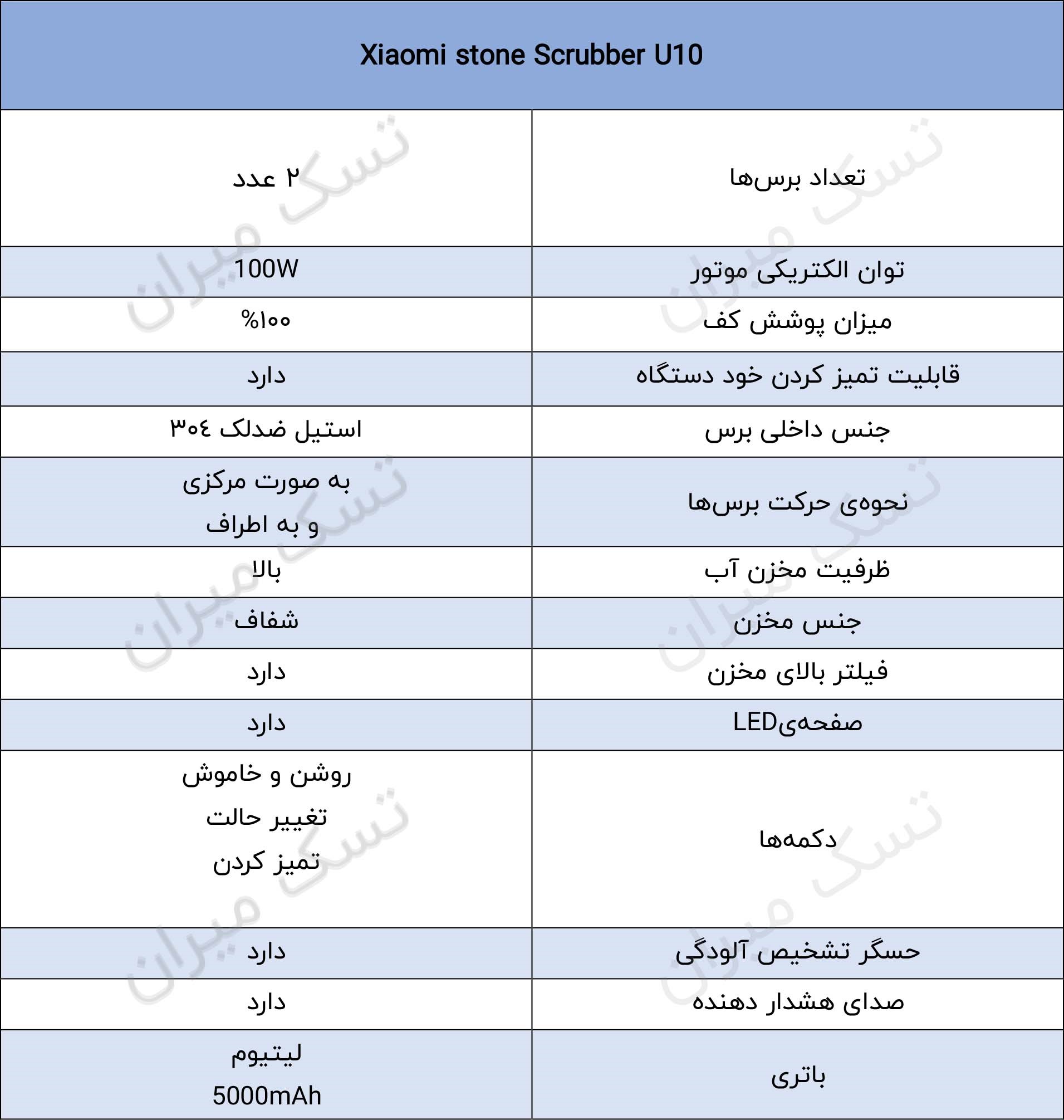 جدول مشخصات جاروهای بیسیم شیائومی