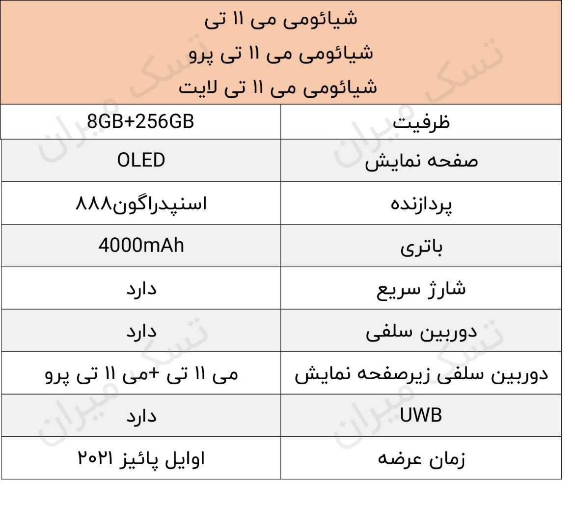 مشخصات گوشیهای سری شیائومی می 11 تی