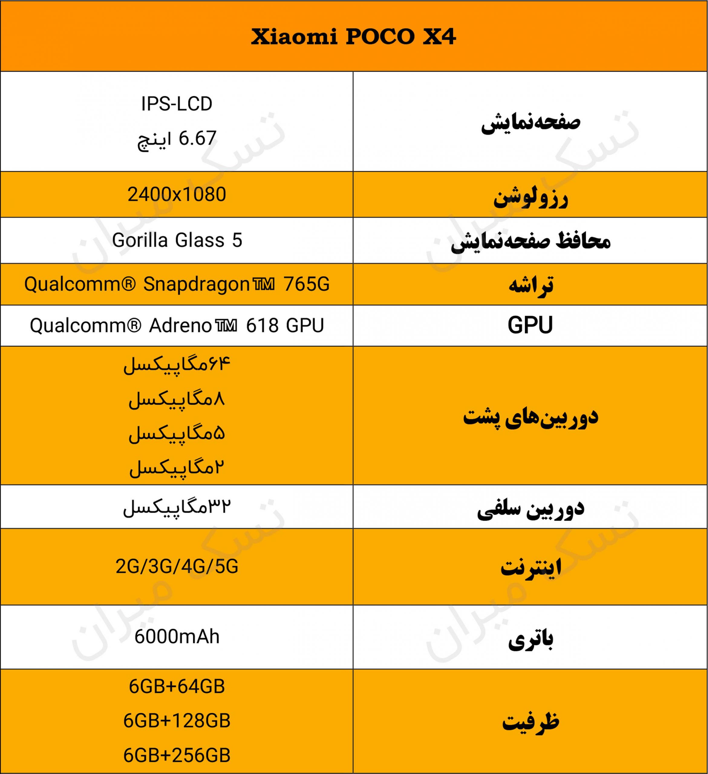 جدول مشخصات پوکو ایکس 4